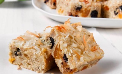 - Dans un robot culinaire, mettre les flocons d’avoine, le lait écrémé, les graines de tournesol, la farine, le sirop d’érable et les œufs. Réduire en purée jusqu’à ce que le mélange soit presque onctueux, environ 10 secondes. En remuant, ajouter les canneberges, les abricots et les amandes. Verser dans le plat. Saupoudrer de noix de coco.