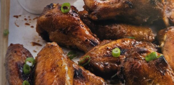 - Égoutter les ailes de poulet et les déposer sur une plaque de cuisson tapissée de papier parchemin. Transvider la marinade dans une casserole.