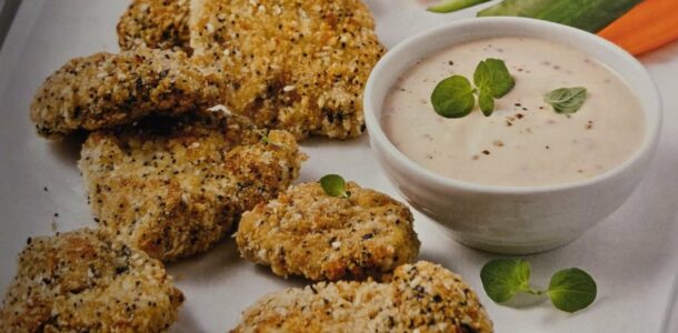 - Préparer trois assiettes creuses. Dans la première, déposer la farine. Dans la deuxième, battre les oeufs. Saler et poivrer. Dans la troisième, mélanger les chapelures avec la poudre d’ail, la poudre d’oignon, les graines de pavot et les graines de sésame.
