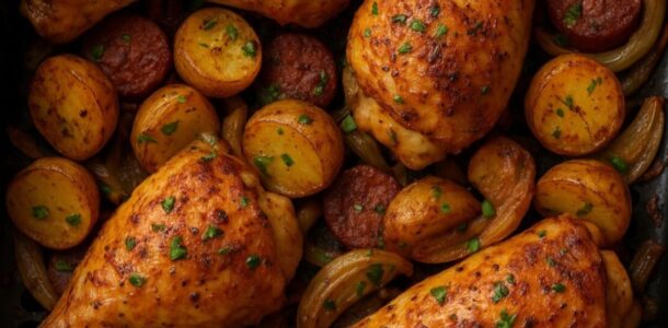 Quand la simplicité rencontre la gourmandise, cela donne des plats comme celui-ci : du poulet doré, du chorizo fondant, des pommes de terre nouvelles croustillantes et des oignons caramélisés, le tout cuit sans effort à la friteuse à air. C’est une recette qui incarne parfaitement l’esprit de la cuisine maison rapide, savoureuse et généreuse.