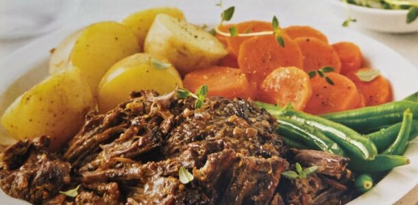 - Couvrir et cuire à faible intensité de 8 à 10 heures, jusqu’à ce que la viande se défasse facilement à la fourchette.