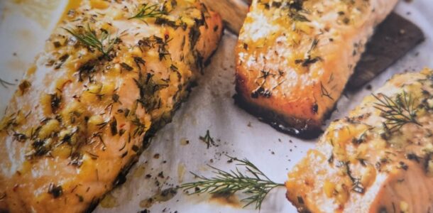 - Déposer les filets de saumon sur une plaque de cuisson tapissée de papier parchemin. Cuire au four de 10 à 15 minutes, jusqu’à ce que les filets se défassent facilement à la fourchette.