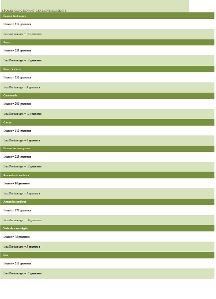 RÈGLES CONCERNANT CERTAINS ALIMENTS